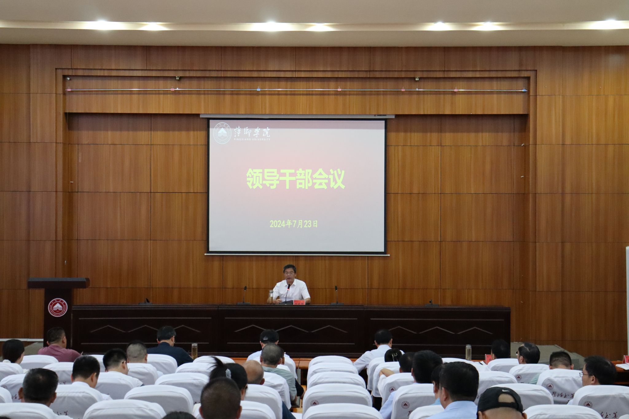 7月23日,我校在至善楼学术报告厅召开全校领导干部会议,传达学习党的二十届三中全会精神,以及全省、全市领导干部会议精神,对全校学习宣传贯彻工作进行动员部署。会议强调,全校各级领导干部要切实增强思想自觉和行动自觉,压实工作责任,扎实做好学校工作中的重点难点问题,全力以赴做好下半年工作,强化“大抓落实年”活动要求,不折不扣把党的二十届三中全会精神的学习宣传贯彻工作落实到位、抓出成效。党委书记邱晓辉主持传达会议精神并作部署讲话。全体校领导、各部门负责人、各二级学院党委书记、院长参加会议。