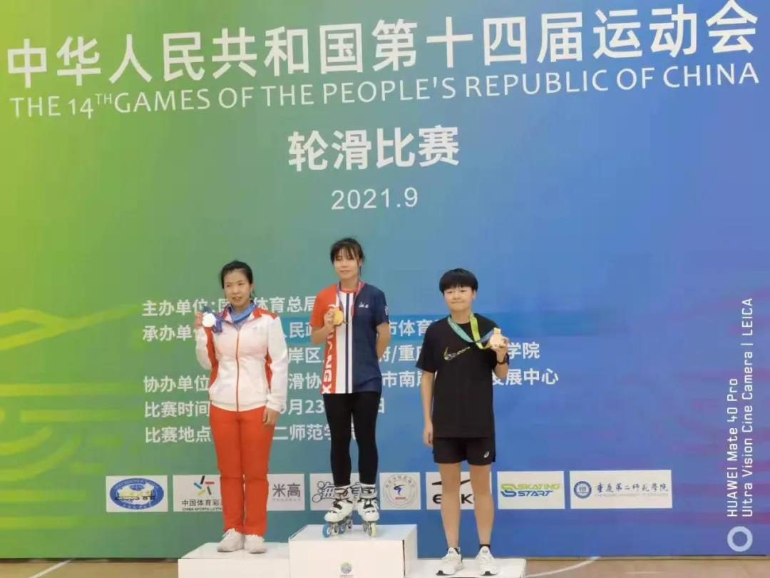 9月26日,我校商学院14级会计电算化(1)班校友、市轮滑运动员陈晨在第十四届全运会女子轮滑比赛中取得女子速度过桩项目第一名,荣登冠军奖台,为江西代表团取得一枚金牌。