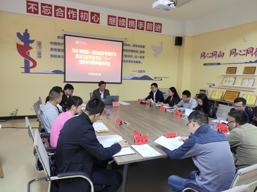 10月12日,我校在党外知识分子之家举办统一战线成员专题学习贯彻习近平总书记“七一”重要讲话精神辅导讲座。校党委副书记邱晓辉就深入学习贯彻习近平总书记“七一”重要讲话精神作专题辅导报告,全校各民主党派、统战社团负责人以及主要成员参加学习。讲座由党委统战部部长王林清主持。