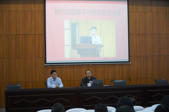 八十载立师范晋学院,薪火相传豪情育桃李。为迎接我校80年校庆,10月14日下午,人文与传媒学院在至善楼学术报告厅举办了由我院优秀校友郭平兴博士主讲的“‘数字人文’视野下华侨华人史研究的谜思与进路”的讲座。讲座由人文与传媒学院副院长凌焰博士主持。人文与传媒学院院长易志文、郭平兴校友当年的班主任杨剑影老师、教学科研科科长孙海龙以及2019级历史学和2019级汉语言文学专业的在校学生近150名师生参加。