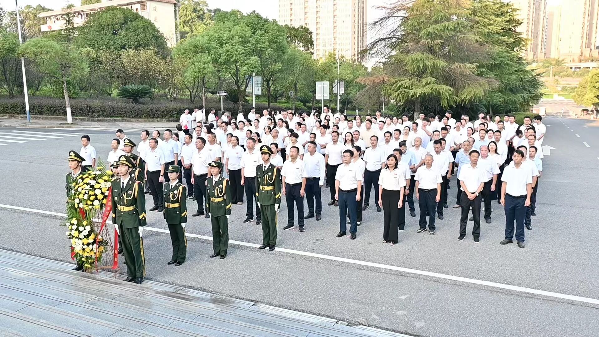 9月30日,正值我国第十一个烈士纪念日。为传承以爱国主义为核心的民族精神,庆祝新中国成立75周年,当天上午,我校师生代表齐聚毛主席铜像广场,举行向毛主席铜像敬献花篮仪式,表达全校师生对伟大领袖毛泽东主席、对为建立新中国英勇牺牲的无数革命先烈的崇高敬意和深切怀念。全体在家校领导、全校副处级以上干部和师生代表600余人参加。