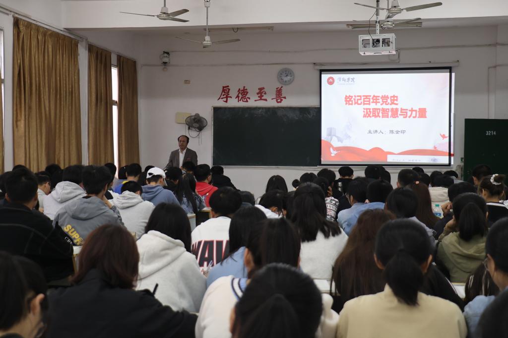 陈金印以“铭记百年党史,汲取智慧与力量”和“回望光辉历史 擘画光明未来——学习习近平总书记‘七一’重要讲话精神”为题开展了两堂专题宣讲。