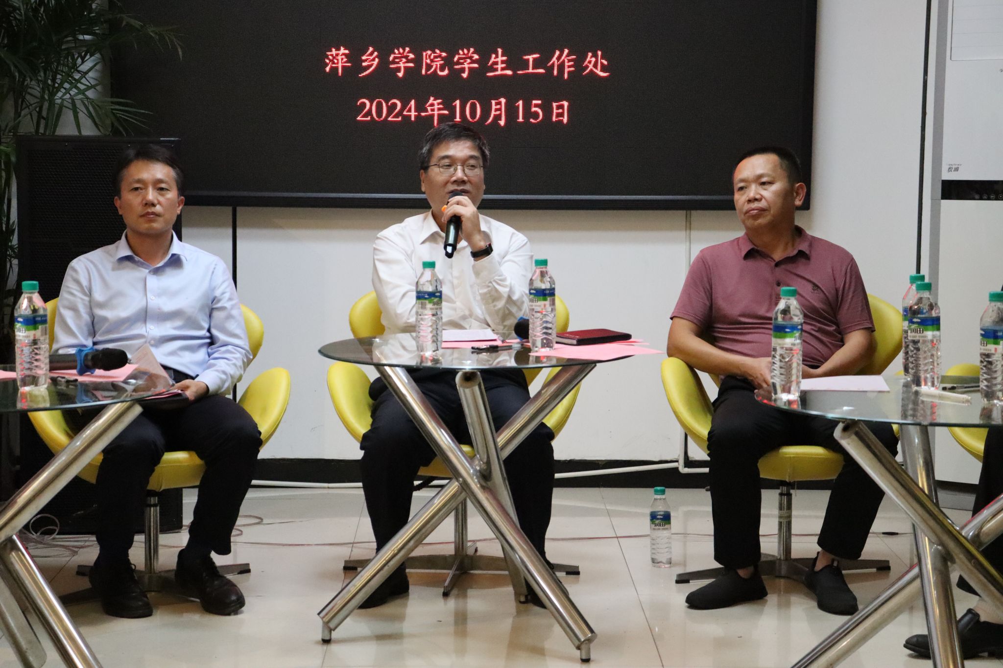 为进一步加强学校相关部门与广大师生员工的沟通联系,提升学生教育管理服务质量,提高同学们在校生活的安全感、满意度,2024年10月15日晚,我校在“红管家”一站式学生社区大学生服务中心召开了一场别开生面的“书记有约·护航成长”学生代表座谈会。校党委书记邱晓辉,校党委委员、副校长刘培圣,校党委委员、党委宣传部部长曾敏,学校相关部门负责人、专职辅导员代表、宿管员代表来自全校各栋学生宿舍的宿管会学生干部和各楼栋学生代表参加座谈。座谈会由党委学生工作部组织,由党委学生工作部部长(学生工作处处长)陈敢主持。