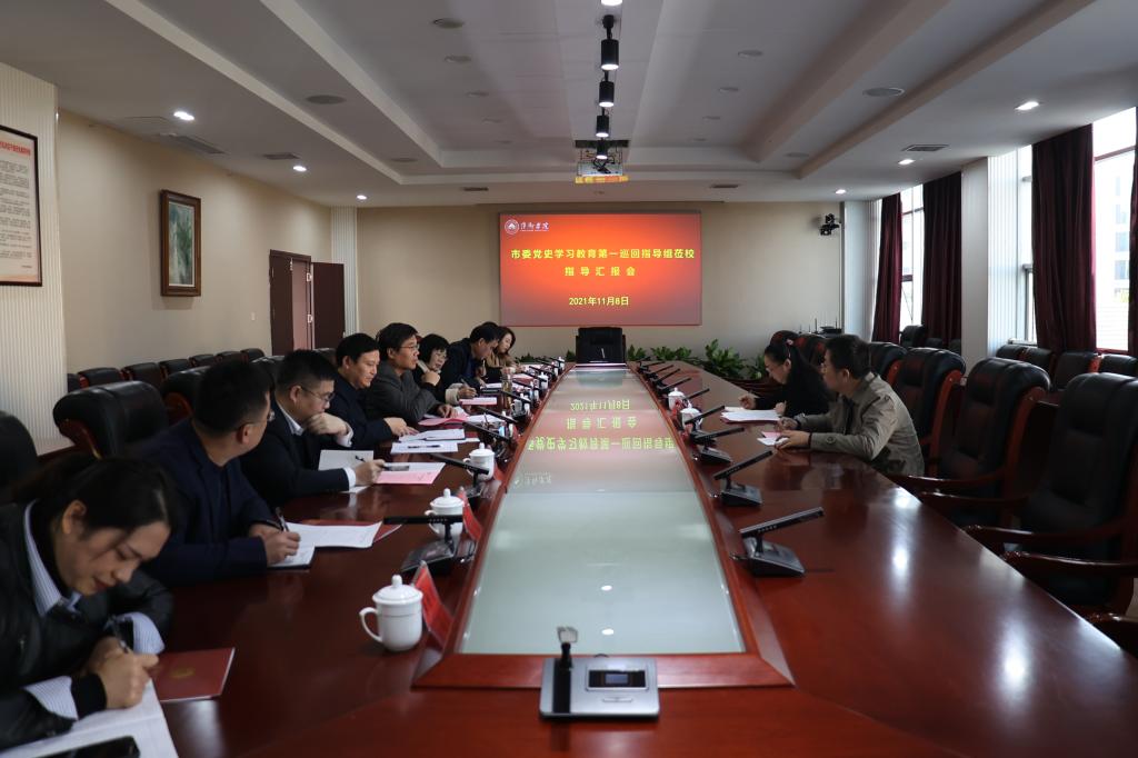 11月8日,市委党史学习教育第一巡回指导组莅临学校督导指导工作并召开座谈会。市委党史学习教育第一巡回指导组肖羽、张弘涛,校领导邱晓辉、陈永秀、陈永国出席会议,组织部、宣传部、统战部、党政办相关负责同志参加会议。会议由校党委副书记邱晓辉主持。