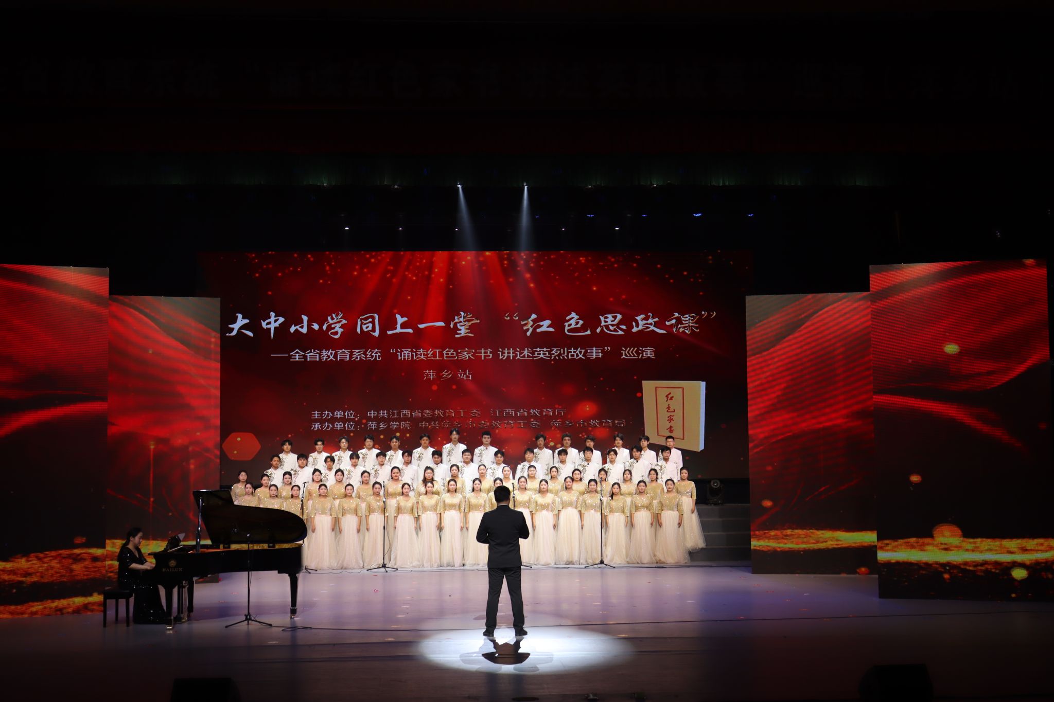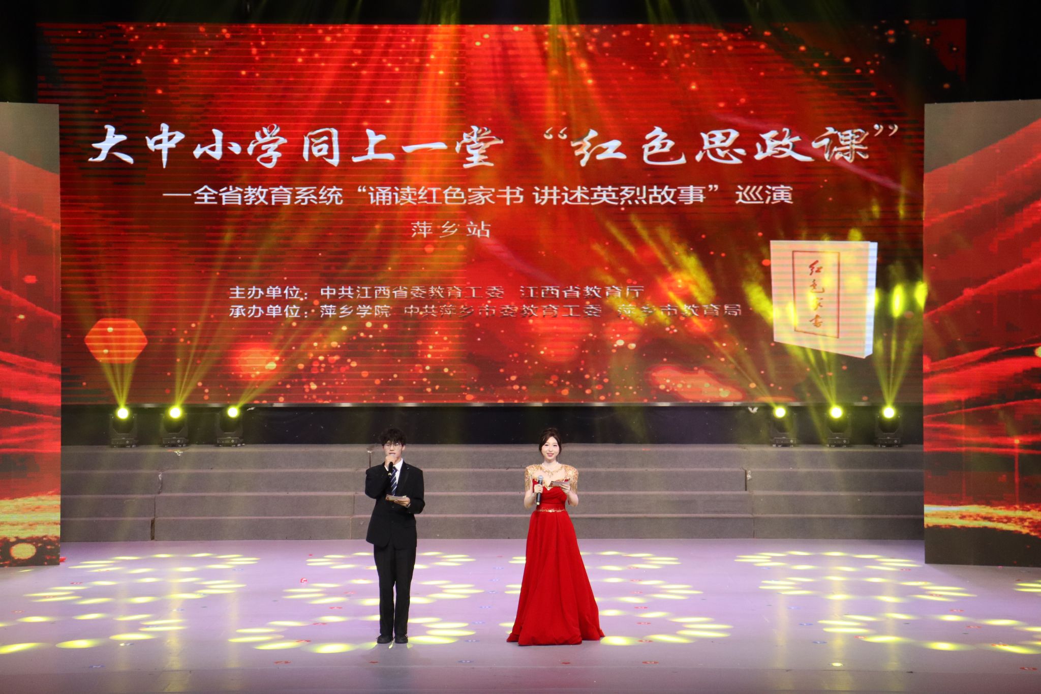 10月26日下午,由中共江西省委教育工委、江西省教育厅主办,萍乡学院、中共萍乡市委教育工委、萍乡市教育局承办的大中小学同上一堂“红色思政课”——江西省教育系统“诵读红色家书,讲述英烈故事”巡演成功举行。省教育厅领导及演出单位师生近800人现场观看演出。