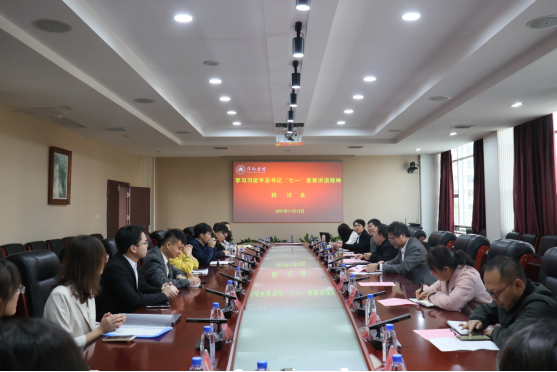 11月12日下午,我校在至善楼第一会议室召开学习习近平总书记“七一”重要讲话精神研讨会。校党委副书记邱晓辉出席会议。宣传部、科研处、马克思主义学院相关负责人以及各论文作者、思政课教师代表参加会议。会议由科研处处长吴春晓主持。