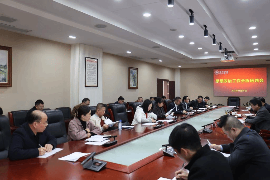 11月25日,我校在至善楼第一会议室召开思想政治工作分析研判会。校党委副书记邱晓辉,党委委员、组织部部长陈永秀,党委委员、宣传部部长陈永国出席会议。党政办、宣传部、纪委办公室、统战部、人事处、学工处、保卫处、教务处、国际教育与交流交中心等部门负责人和二级学院党委书记参加会议。会议由邱晓辉主持。