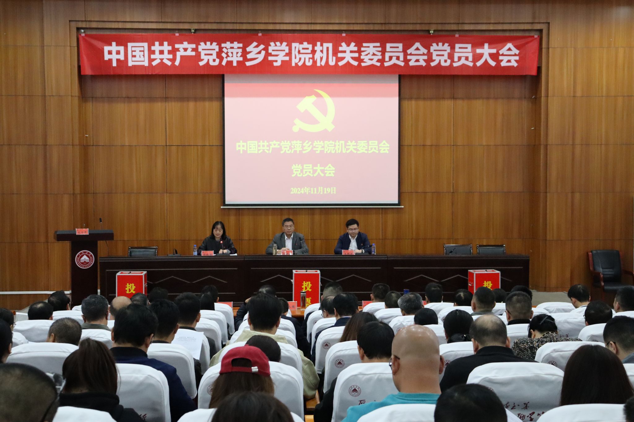 11月19日下午,中国共产党萍乡学院机关委员会党员大会、第一次全体会议在学术报告厅召开,会议由机关党委专职副书记胡艳维主持,19个党支部共142名党员参加大会,全体党员校领导以普通党员身份参加大会。