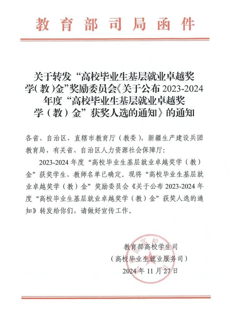 近日,教育部高校学生司(高校毕业生就业服务司)公布了全国高校毕业生基层就业卓越奖获奖名单,我校温磊老师名列其中。此次共有来自全国的60名教师受表彰,其中江西省3名。
