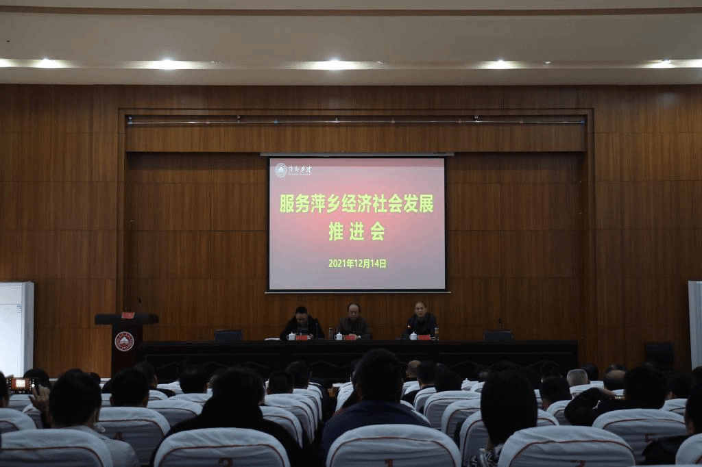 为进一步总结学校服务萍乡经济社会发展工作,明确下一步学校服务萍乡经济社会发展的工作重点,推动一系列校地战略合作框架协议落实落地,12月14日,我校在至善楼学术报告厅召开服务萍乡经济社会发展推进会。全体校领导出席会议,各二级学院、部门的主要负责人和具有教授职称或博士学位的老师参加会议,会议由校党委副书记、校长史焕平主持。