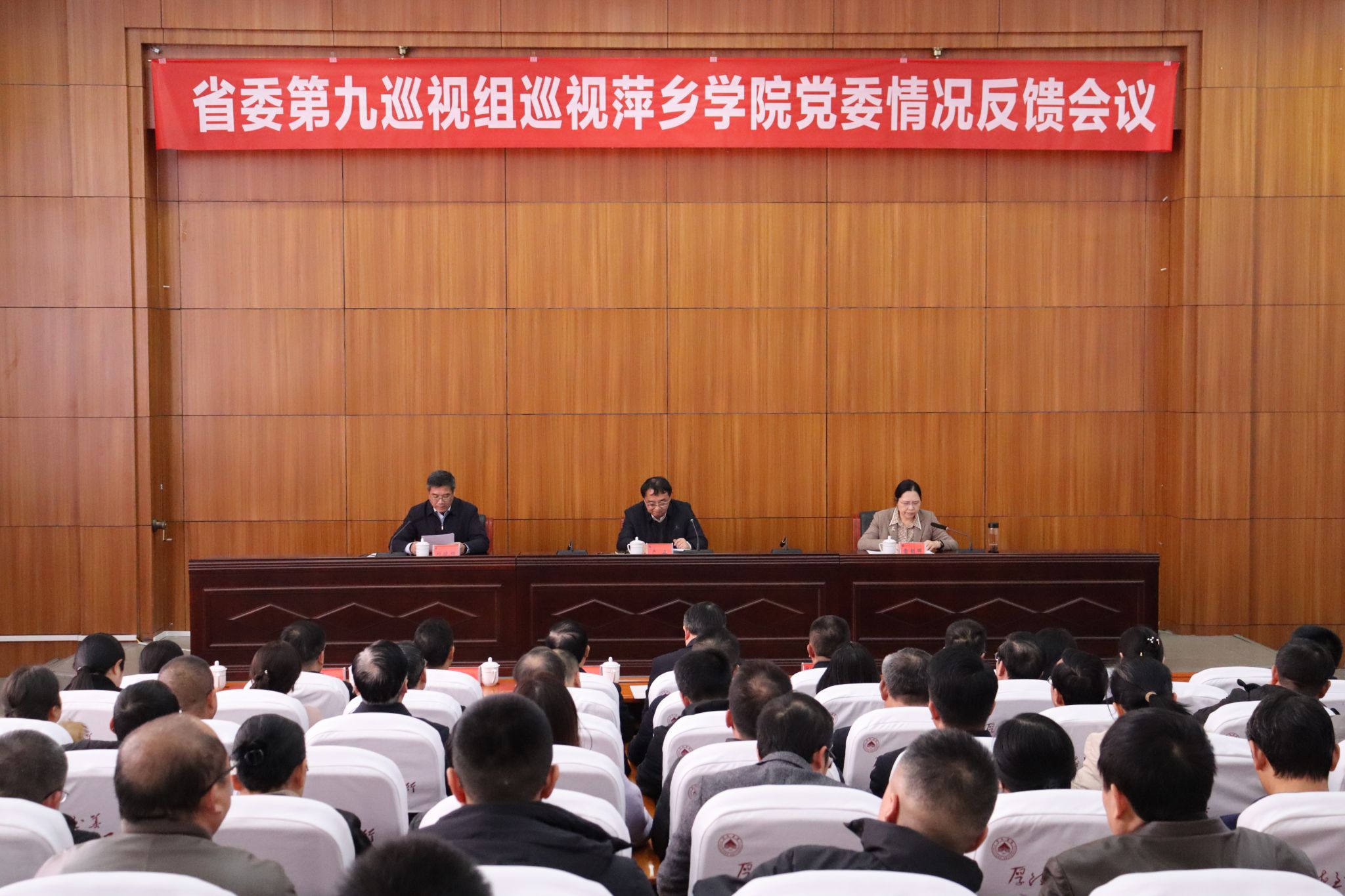 省委第九巡视组有关同志,省纪委监委、省委组织部有关处室负责同志,萍乡学院全体在家校领导、副处级及以上干部、离退休干部代表、教师代表、科级干部代表、辅导员代表参加会议。
