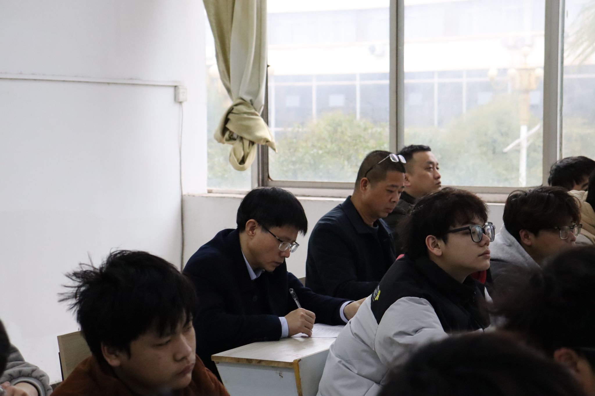 听课过程中,各级领导干部认真聆听教师授课,仔细记录教学内容、教学方法、课堂互动及学生反应等细节,力求全面、客观地掌握教学现状,并对教师们严谨的教学态度、创新的教学方法和学生们积极的学习状态给予了高度评价。校领导勉励教师们要潜心备课、认真授课、反复磨课,不断提高思想政治理论课教学水平和课堂质量。