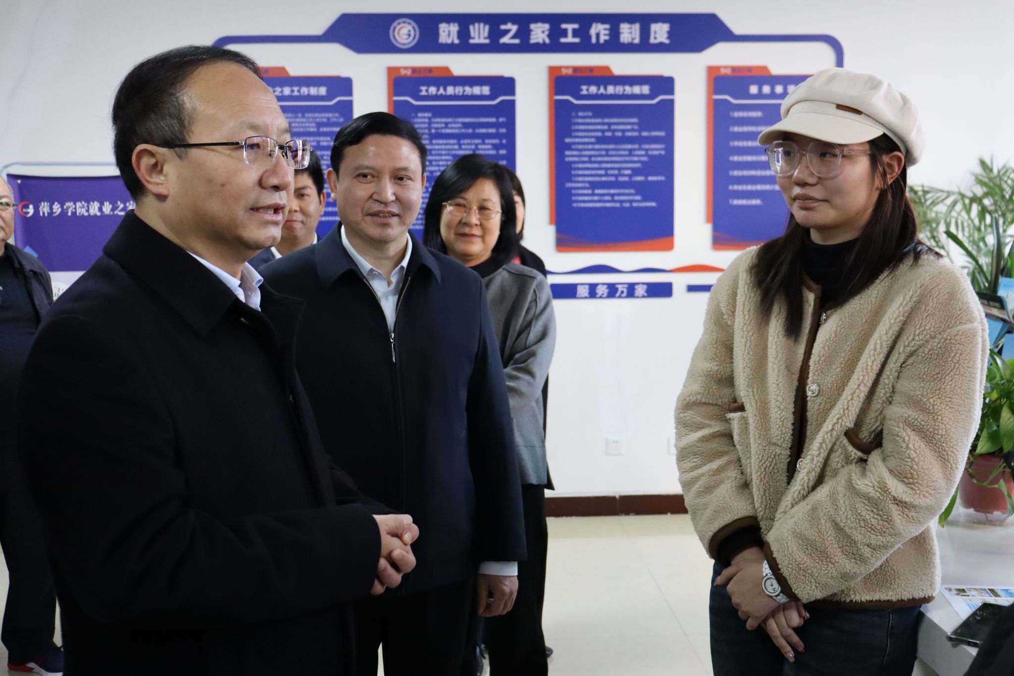 王少玄强调,学校要深入学习贯彻党的二十届三中全会以及习近平总书记关于做好高校毕业生等青年群体就业创业工作的重要指示精神,进一步健全就业促进机制,落实就业支持政策。按照江西省“5+2就业之家”建设要求,充分发挥其功能优势,为学生提供精准高效、便捷暖心的公共就业服务。同时,强化创新创业服务,加大对大学生创新创业的扶持力度,全力促进大学生就业创业,为江西省高质量发展提供坚实的人才支撑。他指出,学校要紧密结合江西省就业工作精神和要求,坚持以高质量就业促进高质量办学。一方面,精准对接人才市场和产业发展需求,推动产教深度融合,积极创办特色优势专业学科,提高人才培养与市场需求的匹配度;另一方面,积极引导大学生牢固树立正确就业观,鼓励学生适应就业市场变化,以择业新观念打开就业新天地,通过创新创业实现更高质量就业。