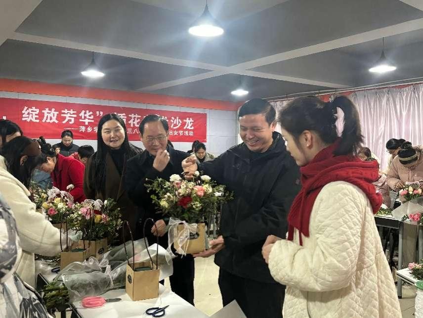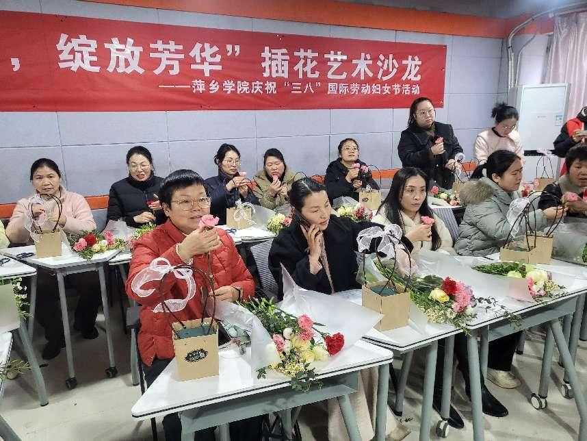 为庆祝第115个“三八”国际劳动妇女节,3月7日下午,萍乡学院工会与妇委会联合举办"花漾人生,绽放芳华"主题插花艺术活动。校党委委员、副校长陈永国到活动现场,与工会、党委教师工作部(人事处)、妇委会等部门负责人一同向全校女教职工致以节日的问候和美好祝愿。