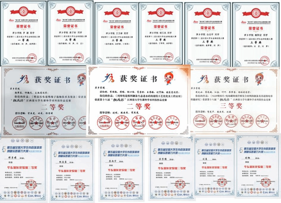 党支部紧紧围绕立德树人根本任务,创新人才培养模式,当好学生成长成才的“引路人”。党支部以开展党员领导干部“三联系”为抓手,不断加强学生思想引领,通过“师徒结对”方式组建师生科研团队12个、学科竞赛团队6个,让学生在攻克科研难题的过程中锤炼品质、磨练意志。教书育人深耕作,自有硕果结累累。两年来,学院毕业生考研录取率均超30%,30余名学生在Inorganic Chemistry等知名刊物上发表论文40余篇;省级以上学科专业竞赛奖励74项百余人次,其中全国大学生金相技能大赛获奖10项,江西省“互联网+”大学生创新创业大赛获奖4项,“挑战杯”大学生课外科学技术作品竞赛获奖7项。无机非金属材料工程21级赵娣同学荣获“中国大学生自强之星”。张亚婷等3名毕业生前往甘肃民勤开展防风治沙志愿服务,受到广泛关注,被学习强国、江西日报等媒体转载宣传。