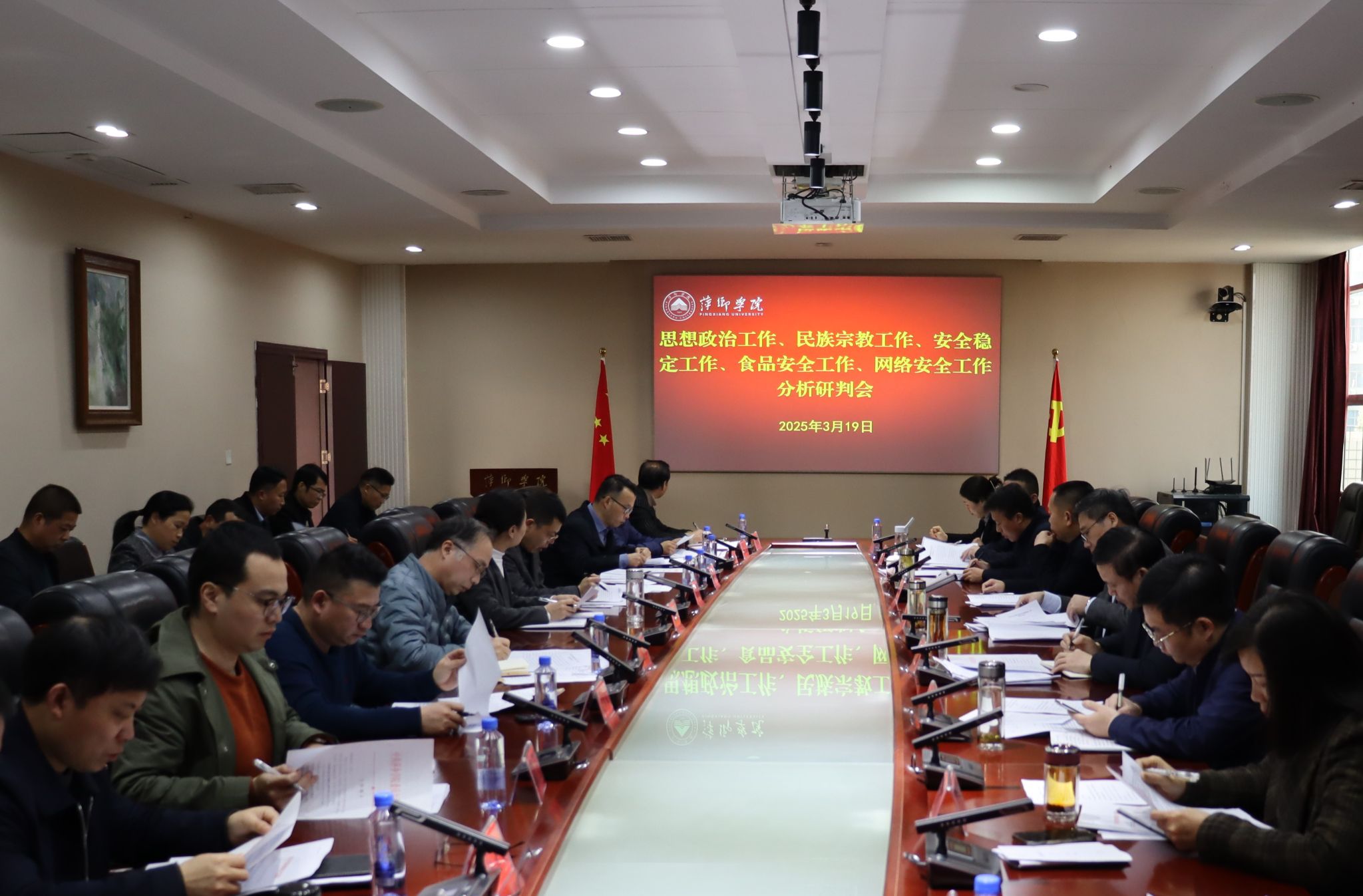 会上,校党委委员、宣传部部长曾敏,校党委委员、统战部部长贺晓梅分析研判和部署了学校意识形态工作、民族宗教工作,保卫处、后勤处、网教中心、学工处等部门负责人先后对安全稳定工作、食品安全保障工作、网络安全工作和学生思想政治工作作了分析研判并部署相关工作。各部门负责人针对部门工作进行交流发言,与会同志结合工作实际发言,开展分析研判,并对出现的问题提出对策建议,进一步明确下一步工作方向。