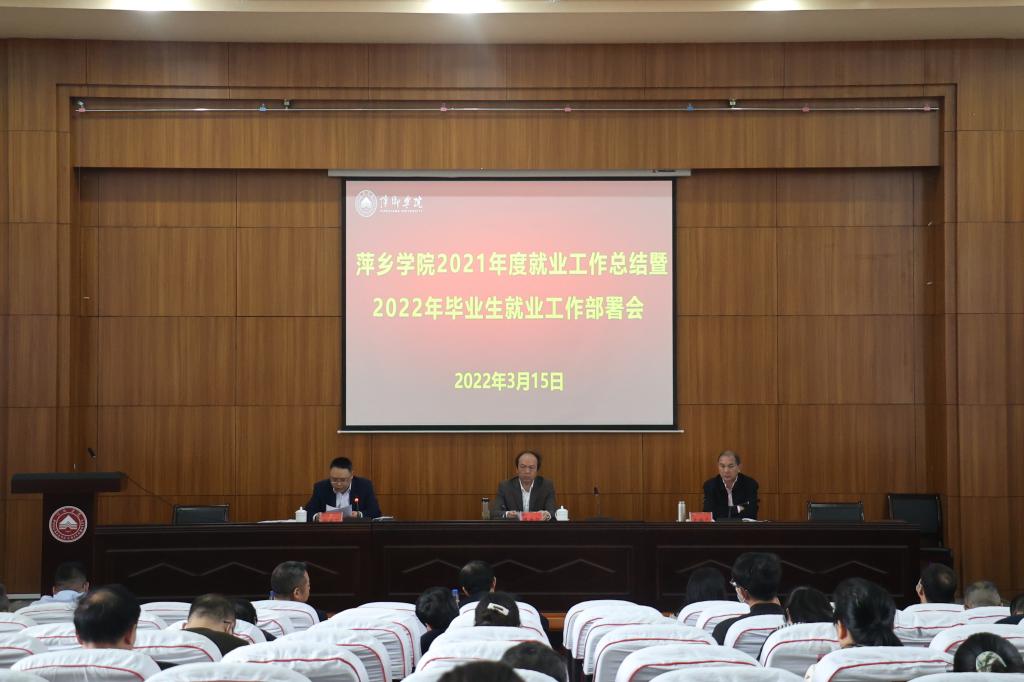 3月15日,我校在至善楼学术报告厅召开萍乡学院2021年度就业工作总结暨2022年就业工作部署会。校党委书记陈金印,党委副书记、校长史焕平,党委委员、副校长邱建丁出席会议,相关部门负责人,各二级学院党委书记、院长、党委副书记、就业干事、毕业班辅导员以及招就处全体人员参加会议。