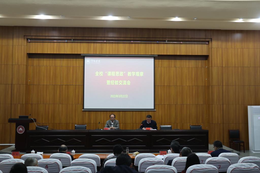 3月22日,我校在至善楼学术报告厅开展全校“课程思政”教学观摩活动暨经验交流会。全体校领导,人事处、教务处、学工处、高评所以及各二级学院党委书记、院长,教学督导组成员,省级、校级“课程思政”示范课程负责人参加会议。会议由党委委员、副校长郭伟主持。