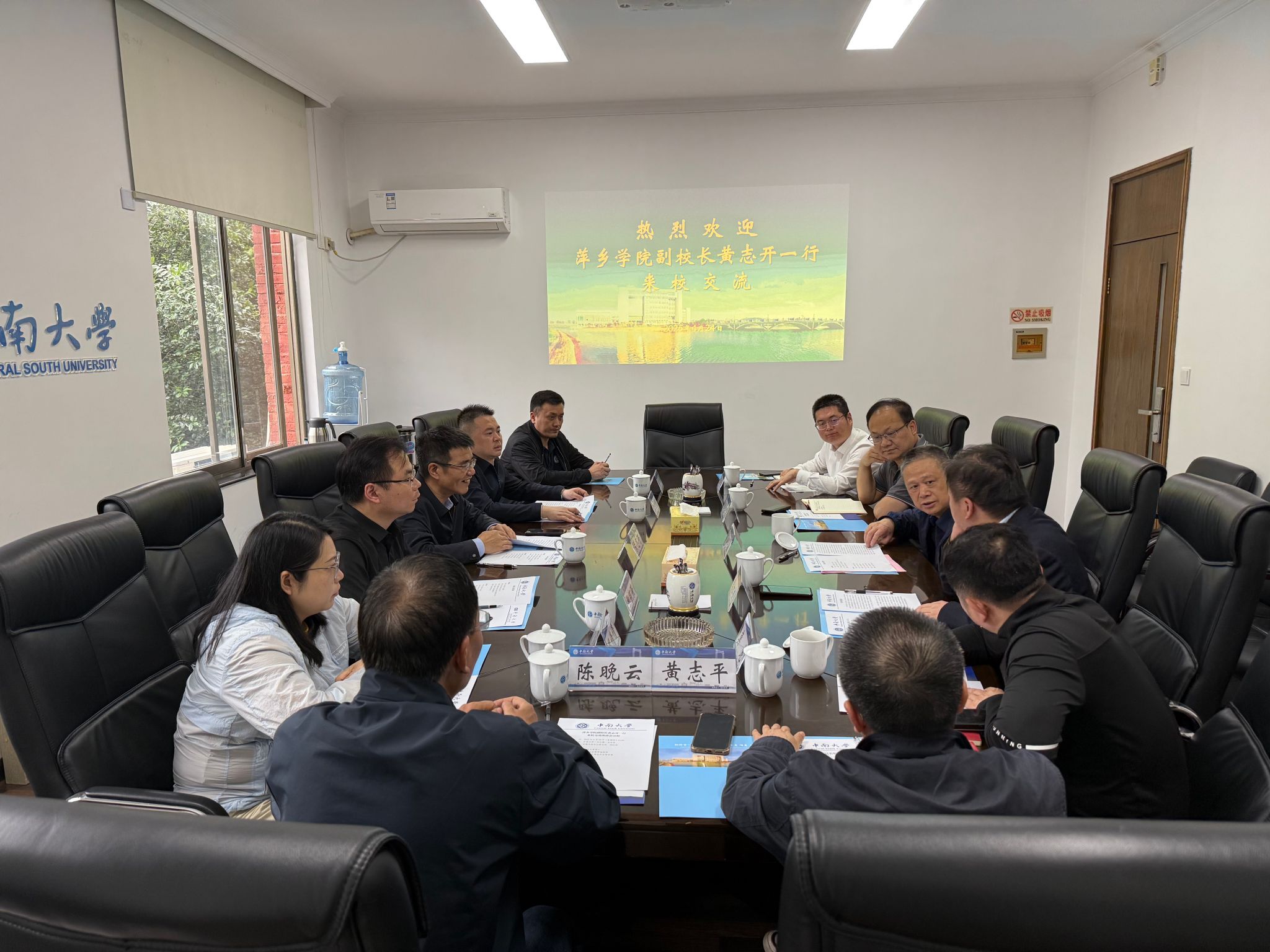 4月24日下午,我校党委委员、副校长黄志开一行赴带队赴中南大学、湘赣边新材料现代产业研究院调研,就学校高层次人才队伍建设、深化人事科技工作、服务湘赣边区域发展战略等方面进行深入调研交流,中南大学党委委员、副校长郭学益, 萍乡市科技局二级调研员彭春涛分别出席座谈会。