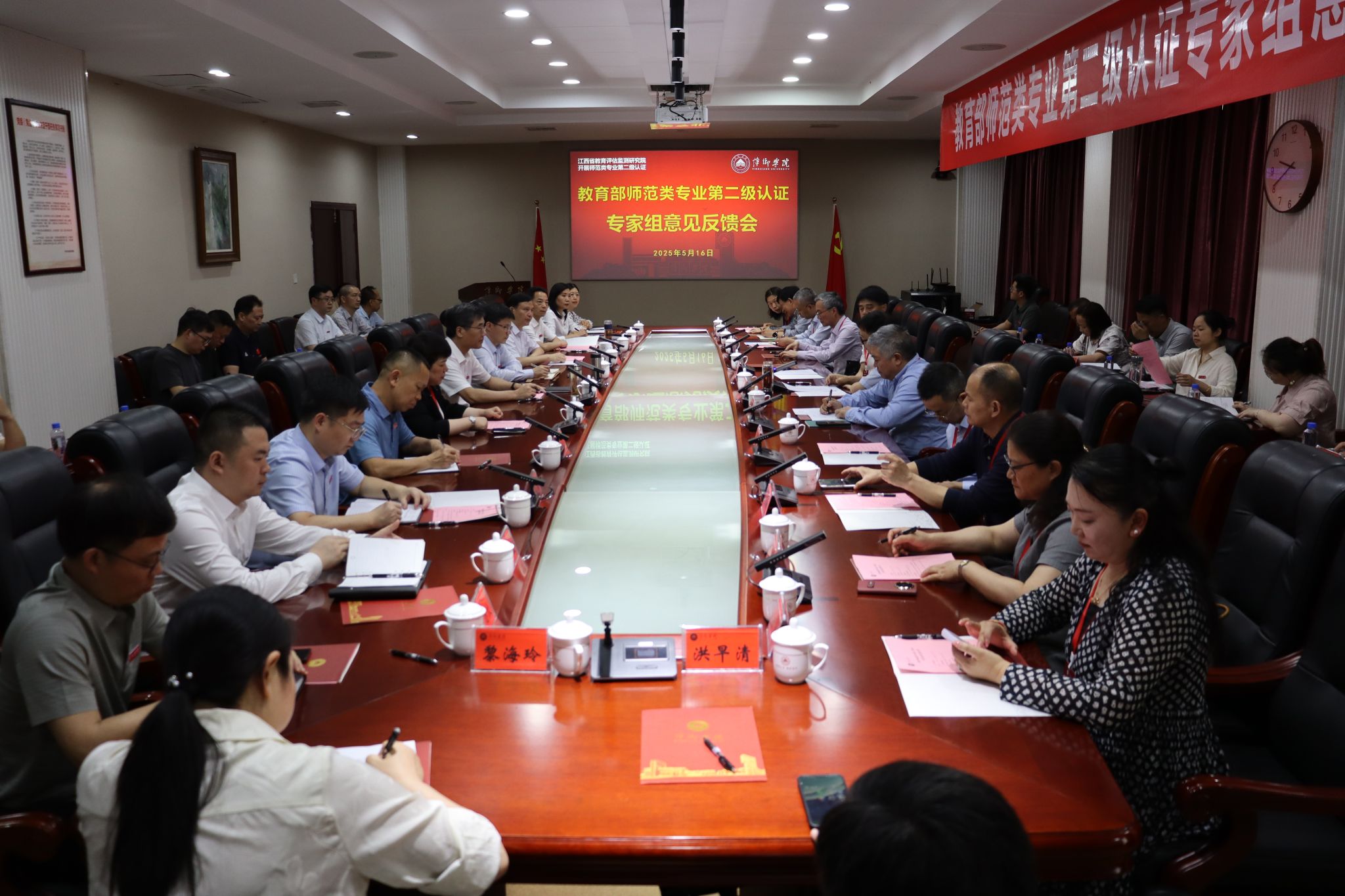 5月16日上午,教育部师范类专业认证专家组意见反馈会在我校至善楼第一会议室召开。联合认证专家组全体成员,江西省教育评估监测研究院领导,全体在家校领导出席会议,相关职能部门负责人、认证专业所在二级学院领导、专业负责人以及各二级学院院长参加会议。反馈会由联合认证专家组组长、湖北第二师范学院副校长田恒平教授主持。