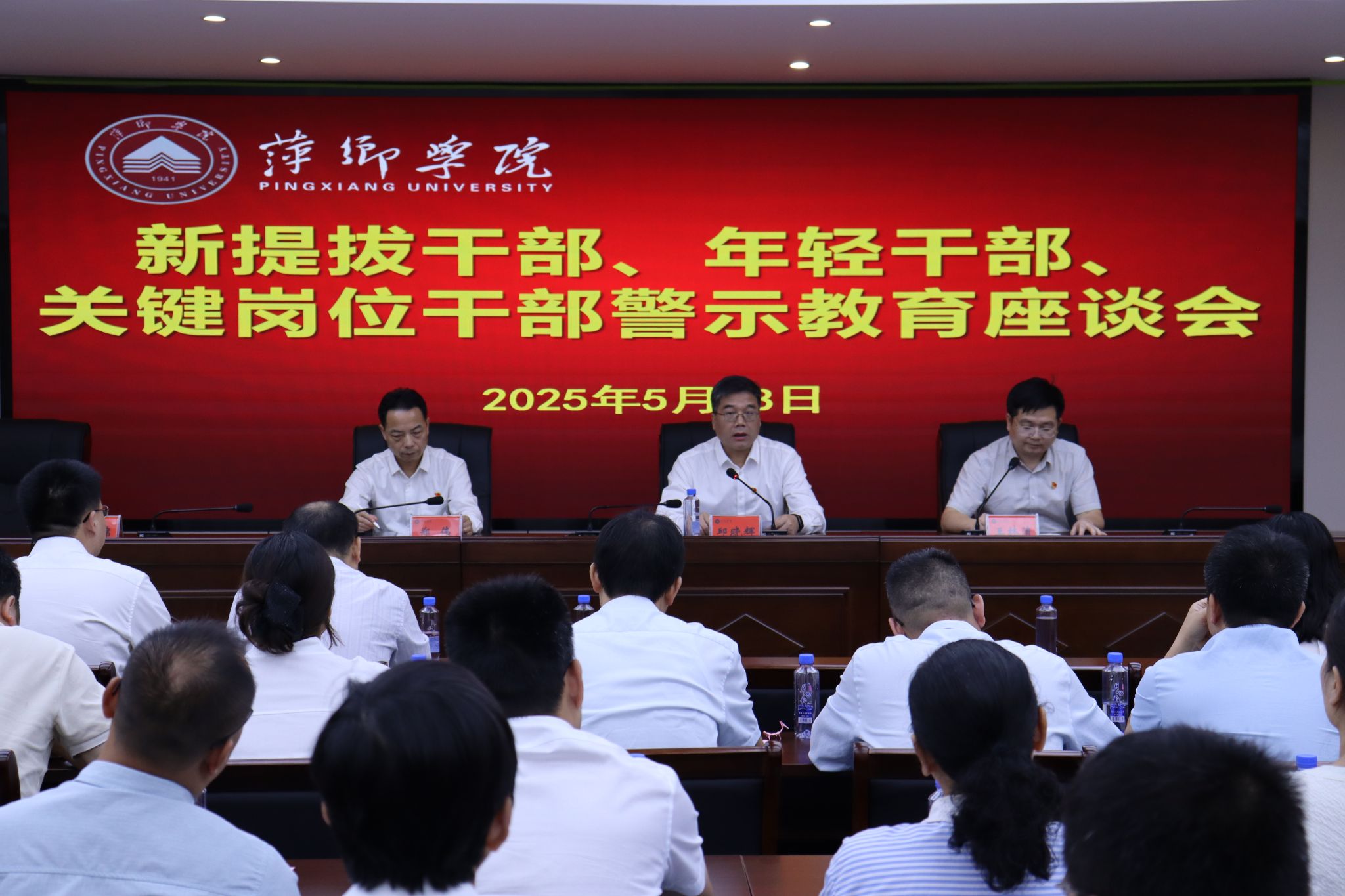 为扎实推进深入贯彻中央八项规定精神学习教育,进一步筑牢年轻干部、关键岗位干部拒腐防变的思想防线,增强纪律意识,锤炼坚强党性,推动干事创业,2025年5月28日下午,我校组织新提拔干部、年轻干部与关键岗位干部赴萍乡市看守所开展警示教育活动。党委书记邱晓辉,党委委员、纪委书记郑伟,党委委员、组织部部长王林清参加。