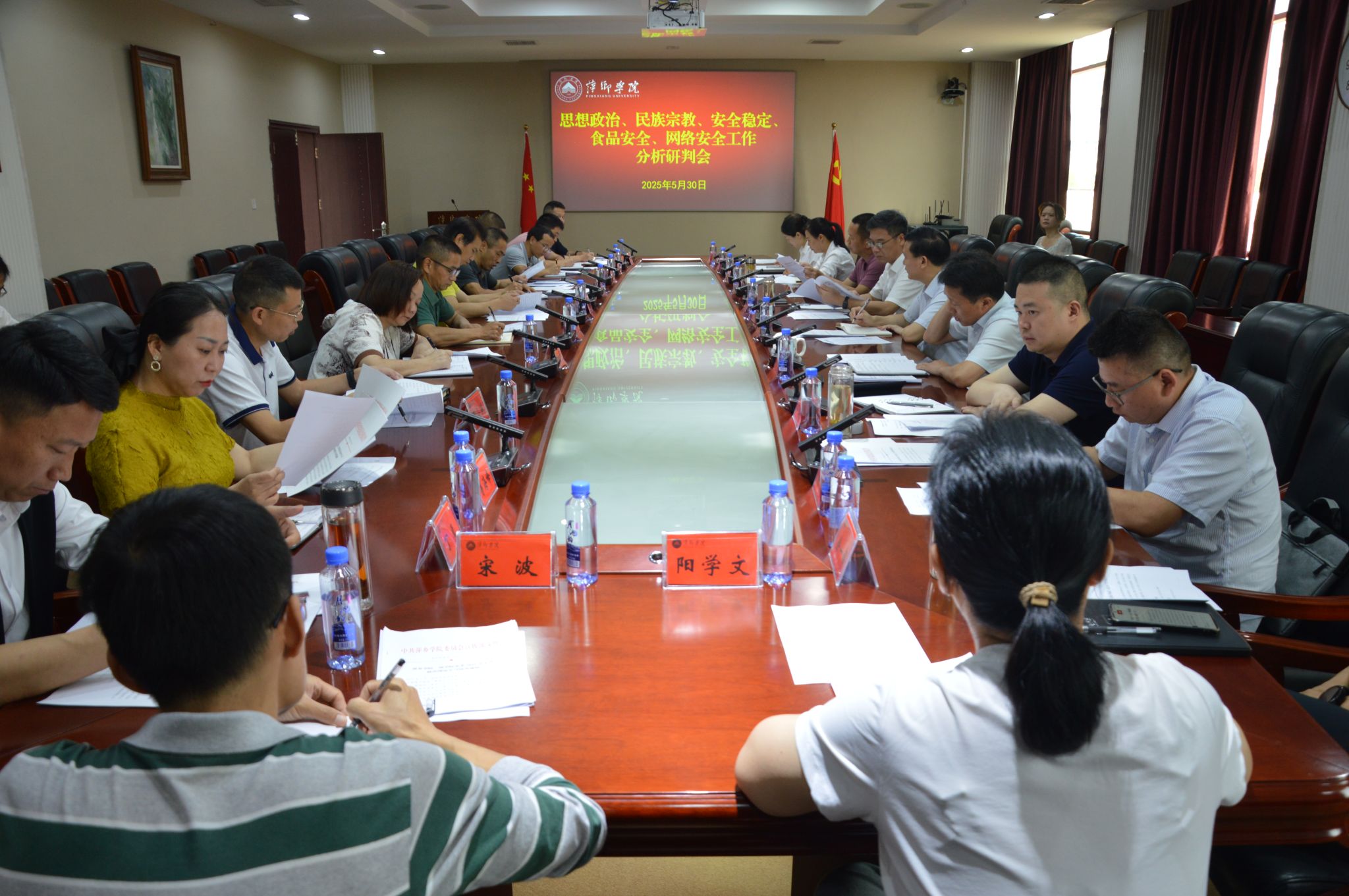 会上,校党委委员、宣传部部长曾敏,校党委委员、统战部部长贺晓梅分析研判和部署了学校意识形态工作、民族宗教工作,保卫处、后勤处、网教中心、学工处等部门负责人先后对安全稳定工作、食品安全保障工作、网络安全工作和学生思想政治工作作了分析研判并部署相关工作。各部门负责人针对本部门工作进行交流发言,与会同志结合部门实际工作发言,开展分析研判,并对存在的问题提出具体的解决措施,进一步明确下一步工作方向。