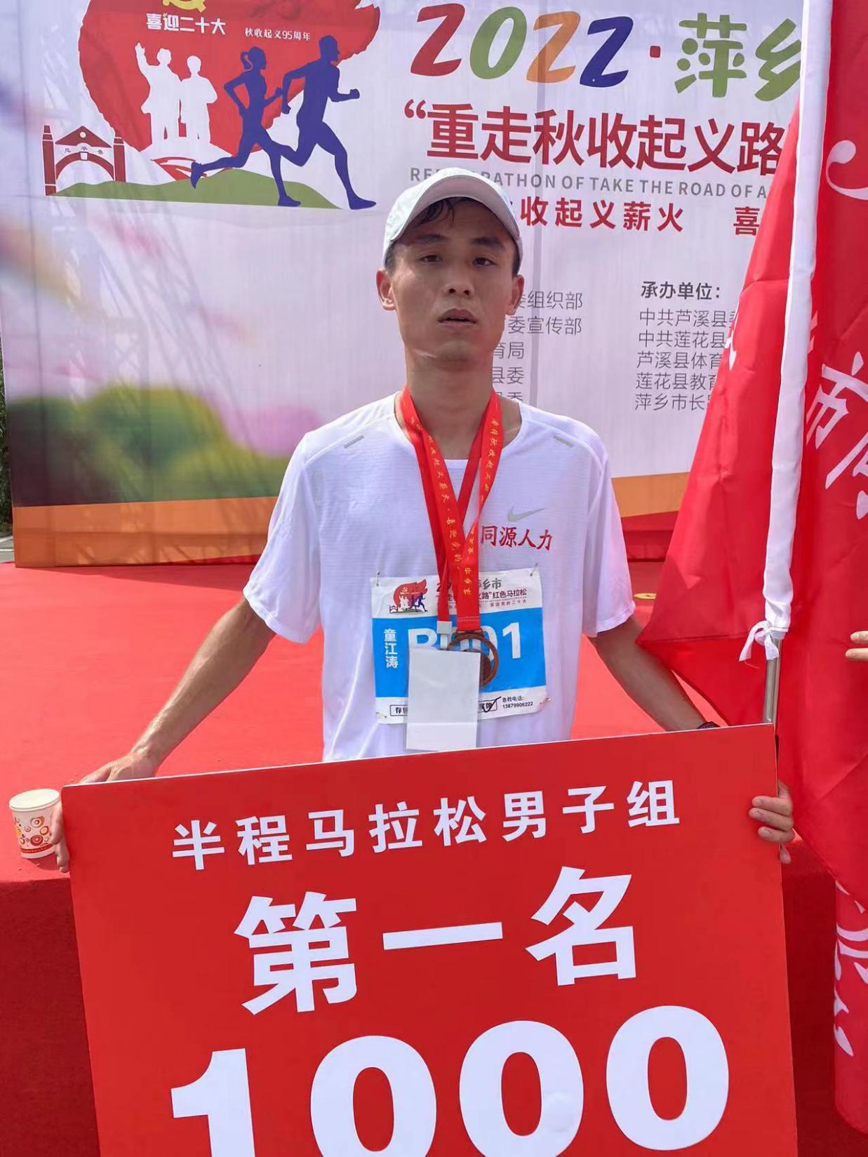5月21日,萍乡市“重走秋收起义路”红色马拉松比赛圆满结束,我校代表队在本次比赛中取得优异成绩。我校派出16名队员参加此次比赛,其中11人参加个人项目,5人参加接力赛团体项目。共获得个人5个名次,团体1个名次,其中童江涛在男子半程马拉松获得全市第一名,杨美花在女子半程马拉松获得全市第六名,郭燕、罗翊君、李鸣分获女子健身跑第二名、第五名和第二十三名,接力赛获得第八名,我校获得优秀组织奖。