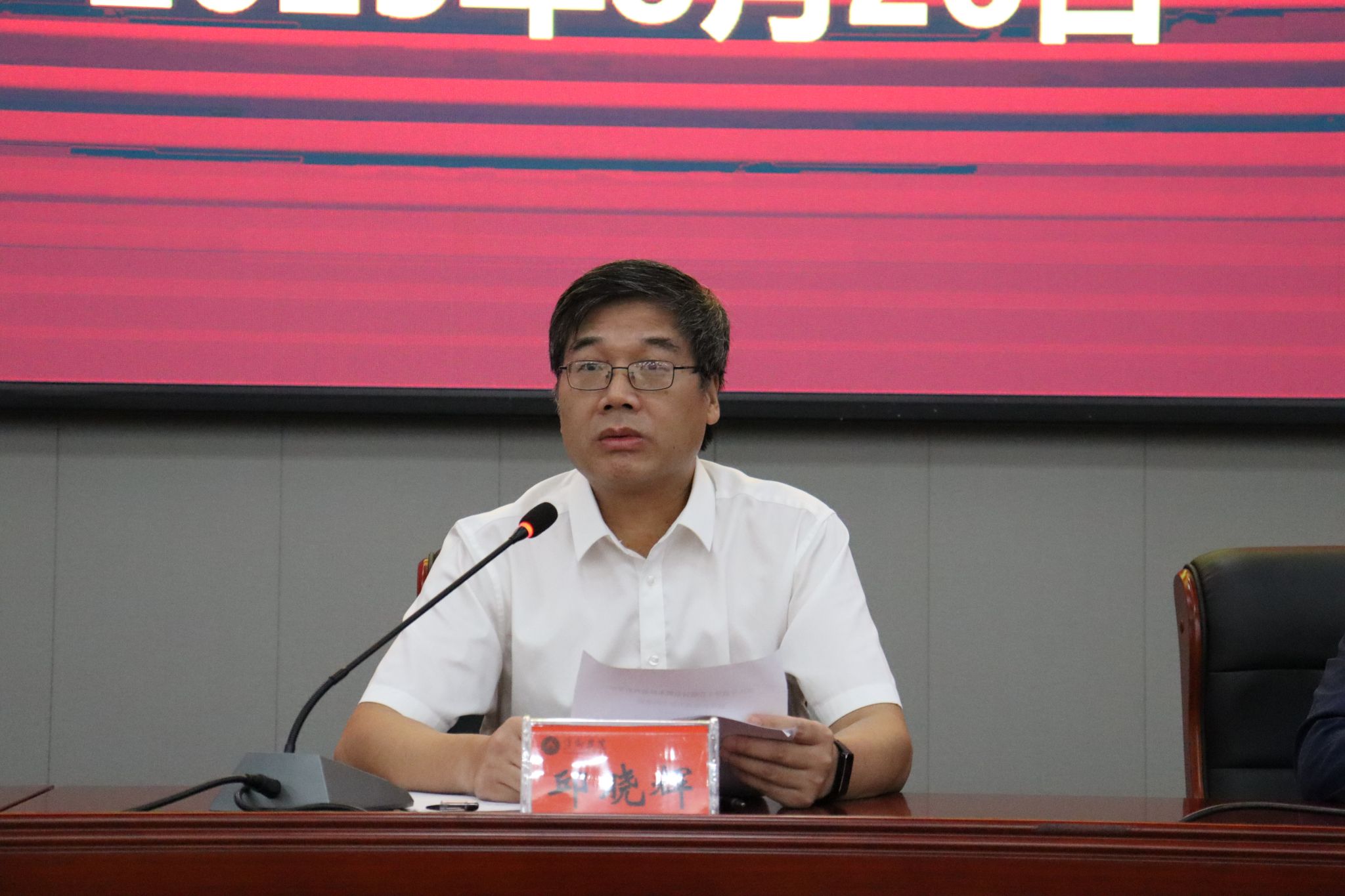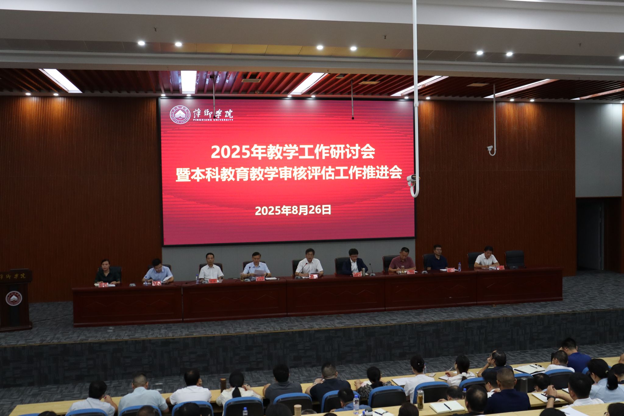 8月26日,我校在天泉楼学术报告厅召开2025年教学工作研讨会暨本科教育教学审核评估工作推进会。全体在家校领导、副处级以上干部、各二级学院教研科长、教研室主任、实验实训室主任、专业负责人、教师代表以及评建办全体成员参加会议。会议由校党委委员、副校长陈永国主持。