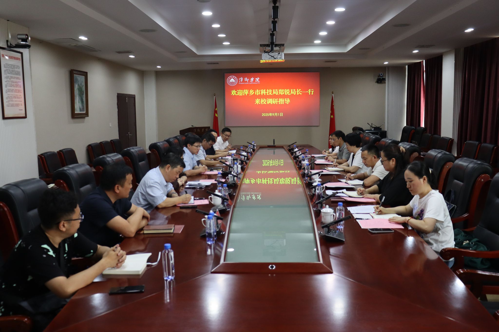 9月1日上午,萍乡市科技局局长郑锐一行来校调研科技创新平台建设工作,副校长黄志开、科研处及相关平台负责人陪同调研,校长刘林芽参加座谈会。