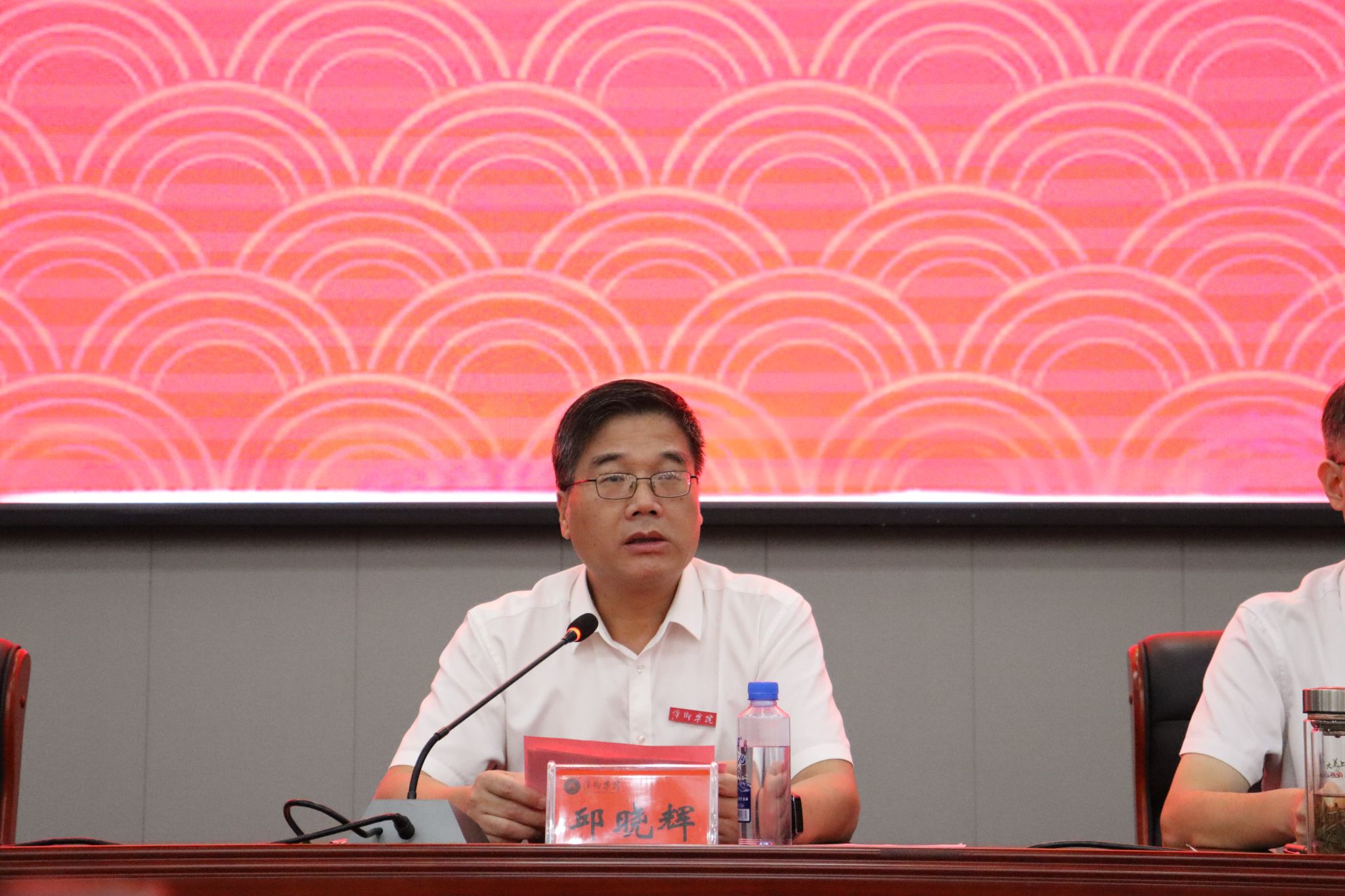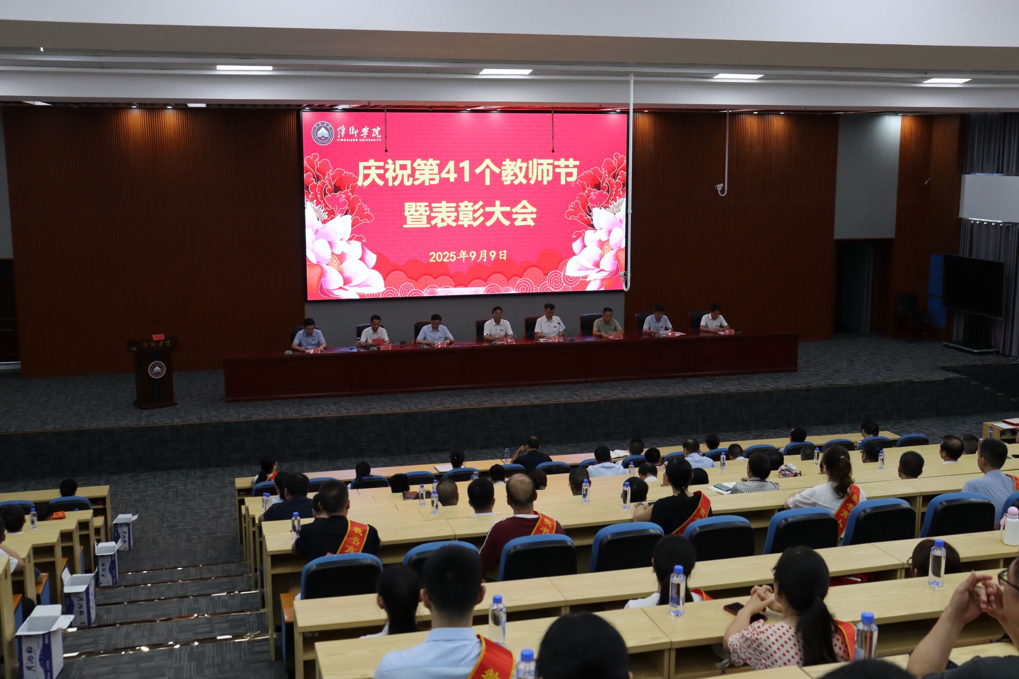 9月9日下午,我校在天泉楼三楼报告厅召开庆祝第41个教师节暨表彰大会。校领导邱晓辉、吴代赦、陈永国、刘培圣、郑伟、黄志开、王林清、曾敏出席大会。各二级学院院长、党委书记,各部门负责人,2025年荣获学校“三育人”先进个人、师德标兵、师德先进个人、长期从教教师、新入职教师和各二级单位教师代表共计180余人参加大会。大会由副校长吴代赦主持。