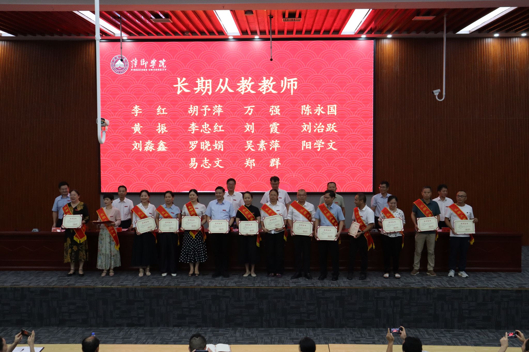 大会在庄严的国歌声中正式拉开了序幕。校党委委员、副校长黄志开宣读《中共萍乡学院委员会关于表彰2025年“三育人”先进个人的决定》《中共萍乡学院委员会关于表彰2025年师德标兵、师德先进个人的决定》《中共萍乡学院委员会关于对李红等同志颁发长期从教荣誉证书的决定》全体校领导为受表彰教师颁奖。