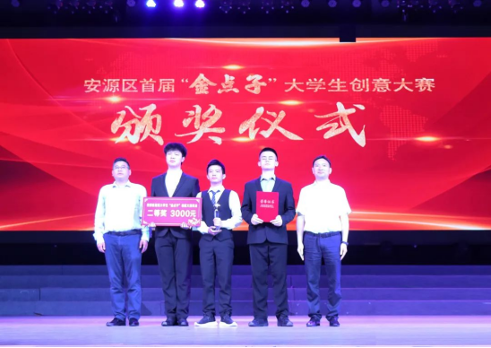 区委副书记、区长邱伟,校党委委员、宣传部长陈永国为安源区首届“金点子”大学生创意大赛电瓷科技(一等奖)颁奖。