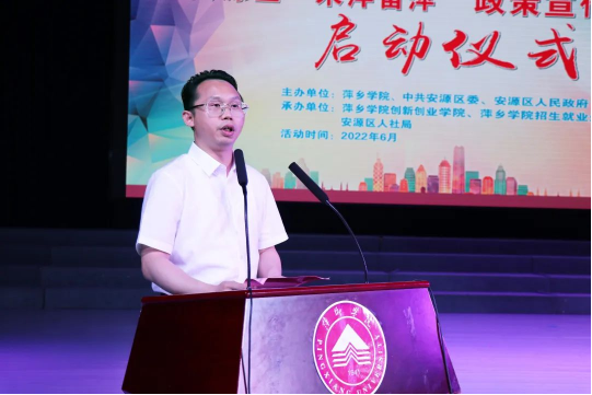 6月9日,安源区“院校毕业生来萍留萍”系列活动月启动仪式在我校举行。校党委副书记、校长史焕平,萍乡市委组织部副部长、市人社局党组书记、局长陈金勇出席启动仪式,区委副书记、区政府区长邱伟出席启动仪式并致辞,校党委委员、宣传部长陈永国,萍乡市就业创业服务中心主任刘忠文,区委常委、副区长袁子安,副区长严楠等相关领导出席启动仪式。