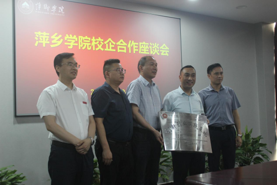 座谈会上,我校创新创业学院与江西百新电瓷电气有限公司签订了横向合作项目协议书。史焕平为江西百新电瓷电气有限公司授予萍乡学院创新创业实践基地牌匾。校科研处负责人介绍了学校平台建设、课题研究、校企合作和社会服务相关情况。萍乡市品牌研究中心负责人畅谈了自己参与校企合作的心得体会。校企双方与会代表围绕如何进一步深化校企合作和产教融合进行了深入交流。