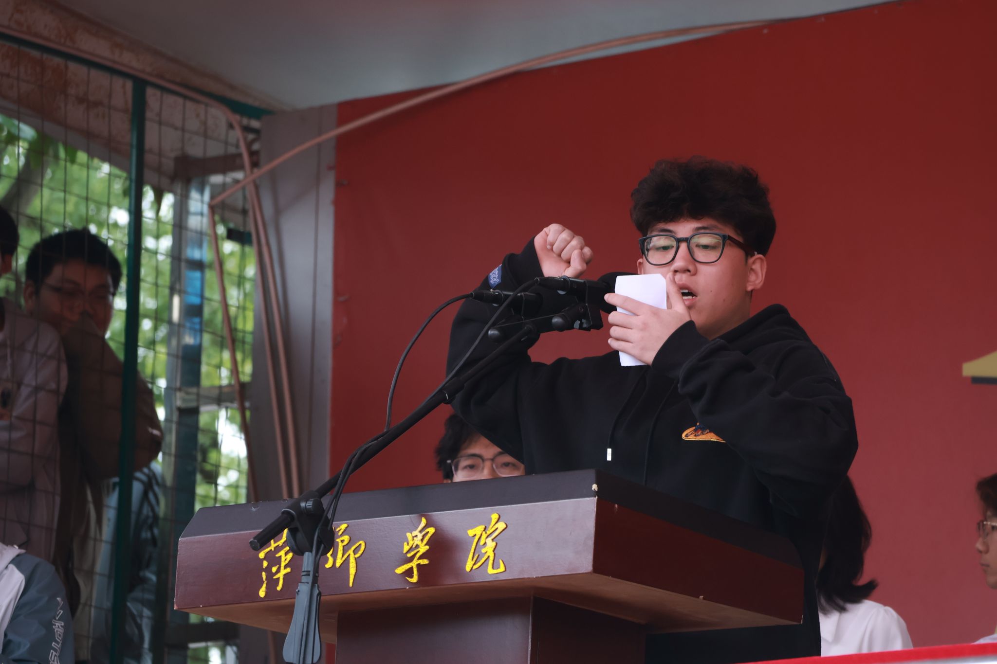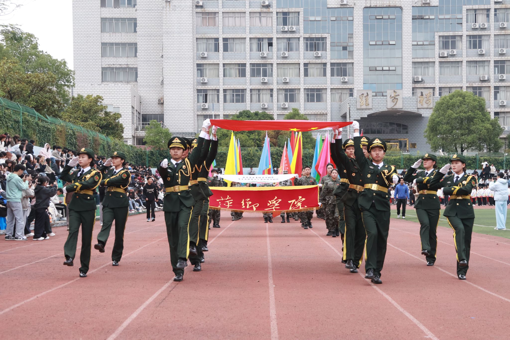 校长刘林芽为开幕式致辞并宣布运动会开幕。他代表校党委、行政,向本次运动会的顺利召开表示热烈的祝贺,向为运动会筹备工作辛勤付出的全体教职工、志愿者们表示衷心的感谢,向即将在赛场上奋勇拼搏的全体运动员们致以最美好的祝愿。他表示,田径运动会暨首届军事运动会,是一场激情澎湃的体育竞技盛会,更是一堂深刻生动的爱国主义教育课、一堂意义非凡的国防教育课、一堂浸润心灵的思想政治教育课。他希望,全体师生能够以此次运动会为契机,积极参与体育锻炼,培养良好的运动习惯,在运动中释放压力、在拼搏中凝聚力量,将赛场上的奋斗精神转化为学习、工作和生活中的强大动力。