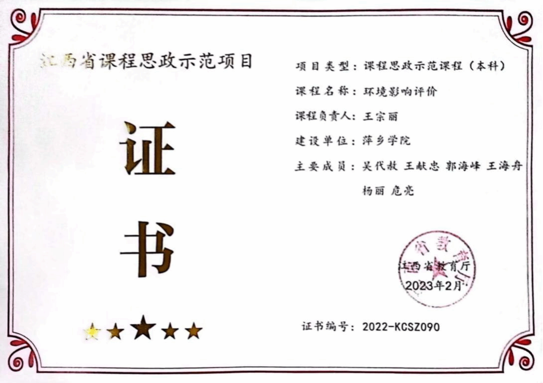 树立育人标杆,强化示范引领。鼓励有丰富教学经验的教师申报教学名师、教学项目、教学奖励和一流课程等,参与教学竞赛,为青年教师树立榜样;重点关注近5年来校的青年教师,通过开展讲课比赛、院领导听课和老教师“传帮带”等一系列活动,不断强化示范引领,提升教学水平。制定《萍乡学院材料与化学工程学院课程思政实施方案》,引导教师进行课堂教学设计,充分挖掘专业课程蕴含的思想政治教育元素,将课程思政教学目标有机融入教学设计,并写入教学大纲和教案。近年来,学院邀请专家开展课程思政辅导;每学期选取10%的开课课程为课程思政示范课;1门课程获得省级课程思政示范课;3门课程入选校级课程思政示范课。