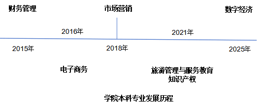 现有财务管理、电子商务、市场营销、旅游管理与服务教育、知识产权、数字经济6个本科专业,全日制在校本科生1300余人。