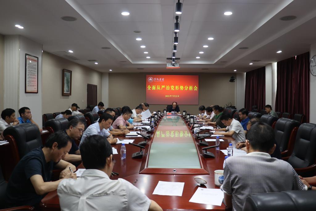 7月22日,我校在至善楼第一会议室召开全面从严治党形势分析会暨理论学习中心组(扩大)集体学习会。校党委领导班子成员出席会议。职能部门负责人列席会议。校党委书记陈金印主持会议并讲话。