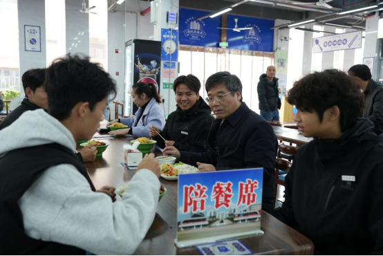 最后,邱晓辉与同学们一同前往三食堂一楼共进午餐。用餐期间,邱晓辉与同学们亲切交谈,询问大家的饮食情况与生活习惯,叮嘱同学们要合理膳食、劳逸结合,在校园里感受到家的温暖。轻松愉悦的用餐氛围中,师生情谊进一步升温,也让同学们感受到了学校领导的关怀与牵挂。