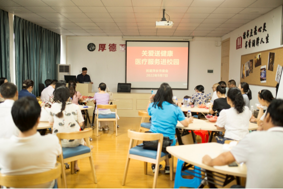 本次活动面向教师和学生分别设健康讲座和免费体检两个环节。健康讲座专家团队由民盟市委会副主委、市人民医院副院长、肝胆外科专家黄文峰带队,5位医疗专家为我校教师代表就常见病的防治进行了互动交流,市医院呼吸与危重症科主任董利民和市医院神经内科副主任医师罗尔敏分别为大家作主题为《肺癌早期甄别与处理》和《早防早治,远离卒中》的健康讲座。