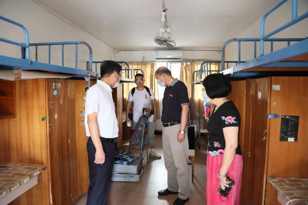 在迎新点,史焕平与学生亲切交谈,询问学生的相关情况,并对他们的到来表示欢迎。在与学生家长交流时,他表示,受疫情影响,家长不能入校,待疫情缓和,欢迎家长进校参观。家长也对学校的疫情防控措施表示理解,也感谢学校对学生的关心和服务。在学生宿舍,史焕平与学生就学生的高考成绩、报道情况、入校感受以及宿舍等方面的情况进行了交流。他鼓励学生继续努力学习,做好学习规划,希望他们能通过努力实现自己的梦想。