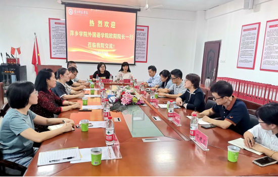 9月26日下午,外国语学院院长、副院长、教研室主任及专业认证工作骨干一行8人至南昌师范学院外国语学院学习交流师范专业认证工作,受到该院党政领导等热烈欢迎和热情接待,双方进行了座谈交流。
