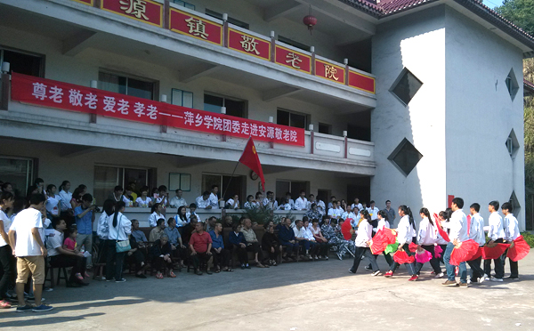 尊老敬老爱老孝老是中华民族的传统美德,在我国第一个法定的老年节之际,10月13日下午,校团委组织学生干部赴安源镇敬老院进行了慰问演出活动。校团委书记刘德平、副书记谢伟萍参加活动。