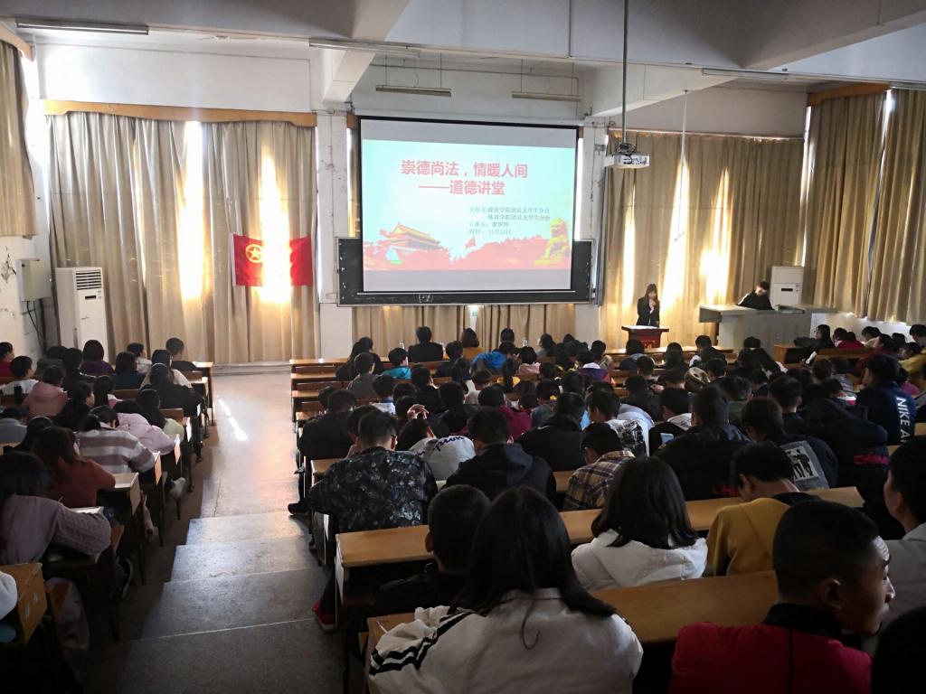 为了全面贯彻落实党的十九大精神,践行习近平新时代中国特色社会主义思想。11月23日中午,政法学院和体育学院于硅步楼1101联合举办道德讲堂活动。政法学院党总支副书记江惺俊、团总支部书记罗燕妮、法律教研室邹甜老师,体育学院党总支副书记文娬、谢银明老师,政法学院和体育学院大一全体学生参加本次活动。本次活动由16思政班廖妍婷同学主持。