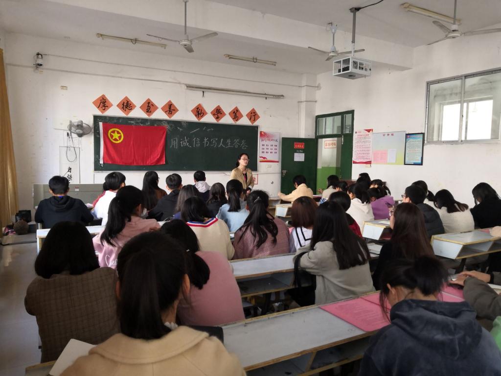 为了让同学们树立诚信意识,做到在实际生活中以诚信为准则约束自己,让诚信观念在同学们心中日益深入,我院团总支学生分会纪检部联合学习部组织各班副班长及学习委员于2018年12月3日中午在英华楼3314开展“用诚信书写人生答卷”的主题会议,并邀请王欢老师及院学生分会副主席周聪作为嘉宾列席现场。
