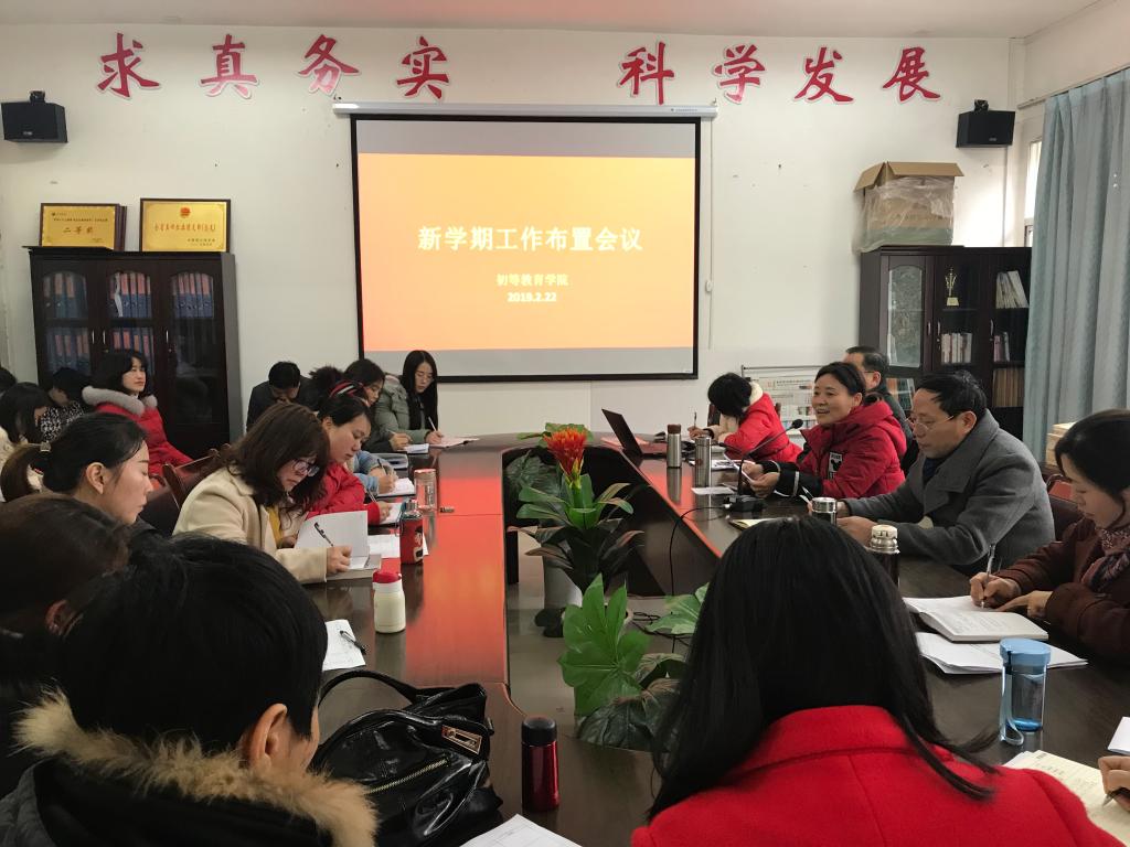 为更好的安排新学期的工作任务,初等教育学院于2019年2月22日下午14:30在院会议室召开了新学期工作布置会议,初等教育学院全体教职工参加了此次会议。