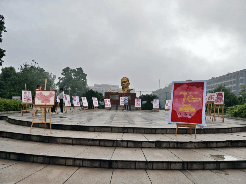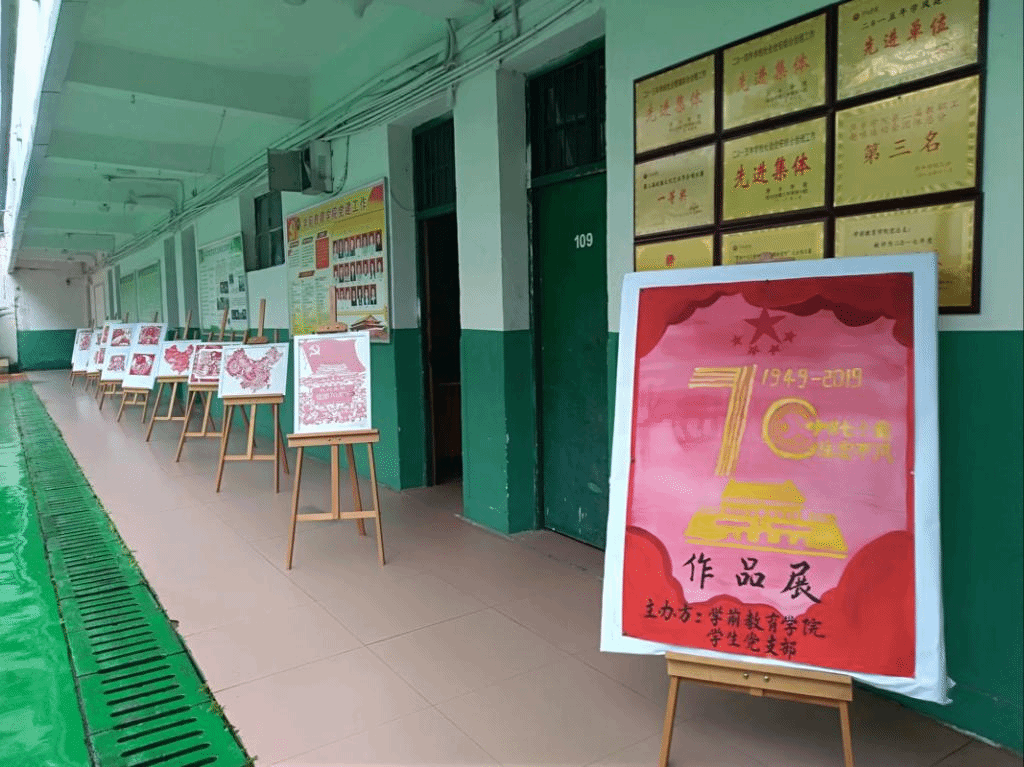 为庆祝中华人民共和国建国70周年,讴歌新中国成立后所取得的伟大成就,进一步激发广大同学的爱国之情,2019年6月12日和14日学前教育学院分别在四如楼一楼和文廷式广场举办“庆祝建国70周年”专业作品展。