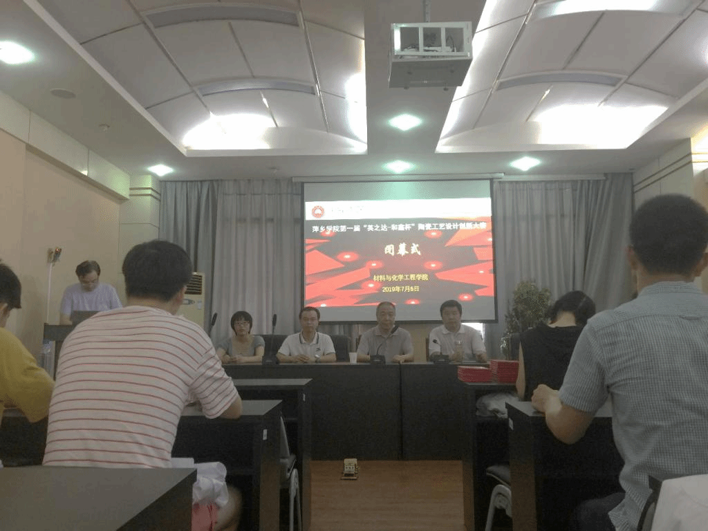 2019年7月6日,由萍乡学院主办、材料与化学工程学院承办、英之达培训教育公司和江西和鑫高科发展有限公司冠名的萍乡学院第一届“英之达-和鑫杯”陶瓷工艺设计创新大赛圆满闭幕,出席闭幕式和颁奖典礼的有材料与化学工程学院党总支书记王献忠、副院长陈林、副书记向芸、英之达教育校长刘晓玲、江西和鑫高科发展公司总经理江和平、评委郭新爽博士等,全体参赛学生。闭幕式由材料教研室主任宋杰光博士主持。