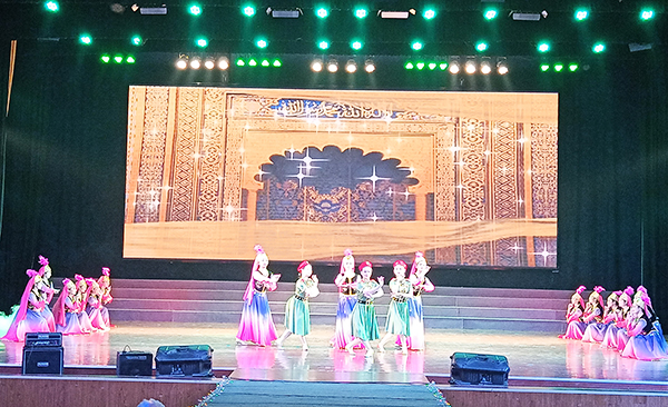 本次晚会共有三个篇章。第一篇章“不忘初心”由吉他社团带来的歌曲《我管你》正式拉开了帷幕。接着是舞蹈社团带来的舞蹈《追梦丰收年》,柔美的音乐伴随着极具异域风情的舞步,这是人们丰收的喜悦,更是逐梦的喜悦。戏剧社团的影子戏《时光》,它用光影的变换带来无限的遐想,灯光的交织描绘梦想的蓝图。艺术学院带来的独唱《那些你很冒险的梦》,展现出梦想的无穷力量。大学生理论研究社团的器乐合奏《紫禁花园》将全场的气氛带入高潮,观众欢呼声不断,掌声不息。