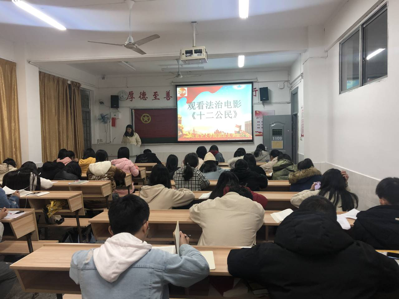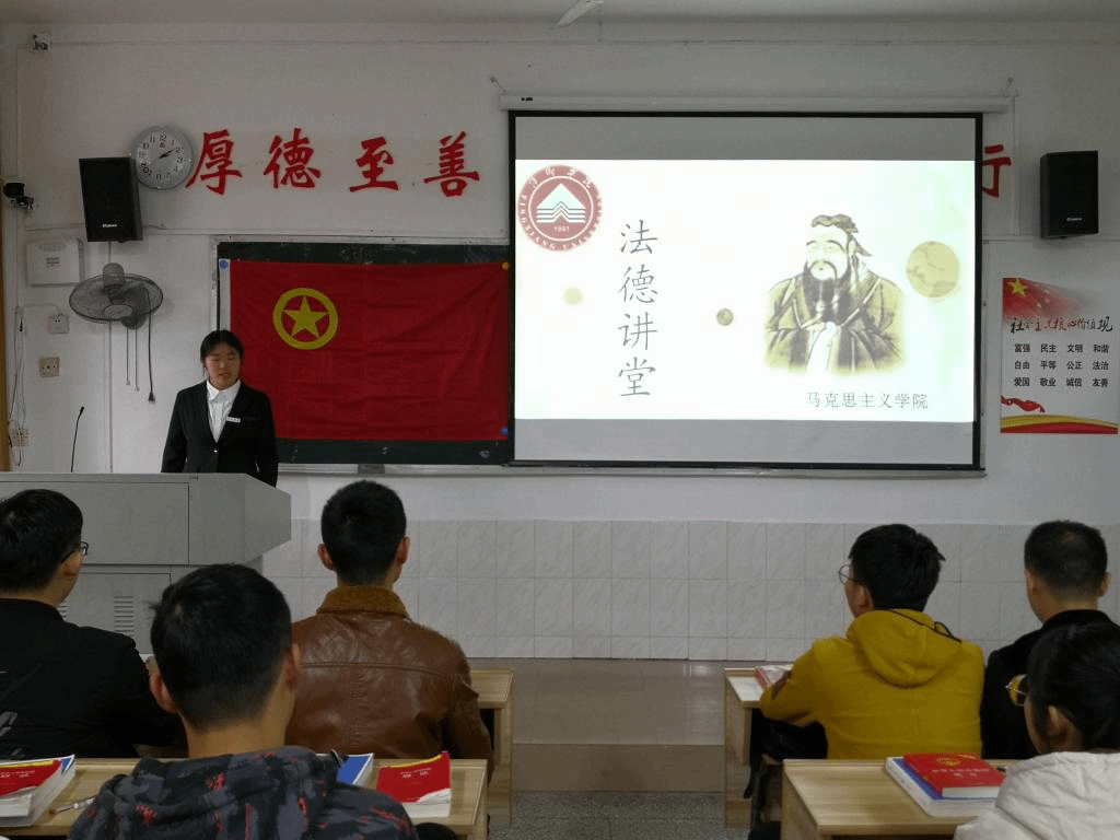 2019年12月5日,马克思主义学院团总支学生分会在跬步楼1103开展了“宪法宣传周”系列活动之“做诚信之人,铸法治之国”为主题的法德讲堂。参加此次讲堂的有马克思主义学院党总支副书记江惺俊、团总支书记陈尧嘉、法律专业教师罗骞、马克思主义学院团总支学生分会全体成员以及部分学生代表。